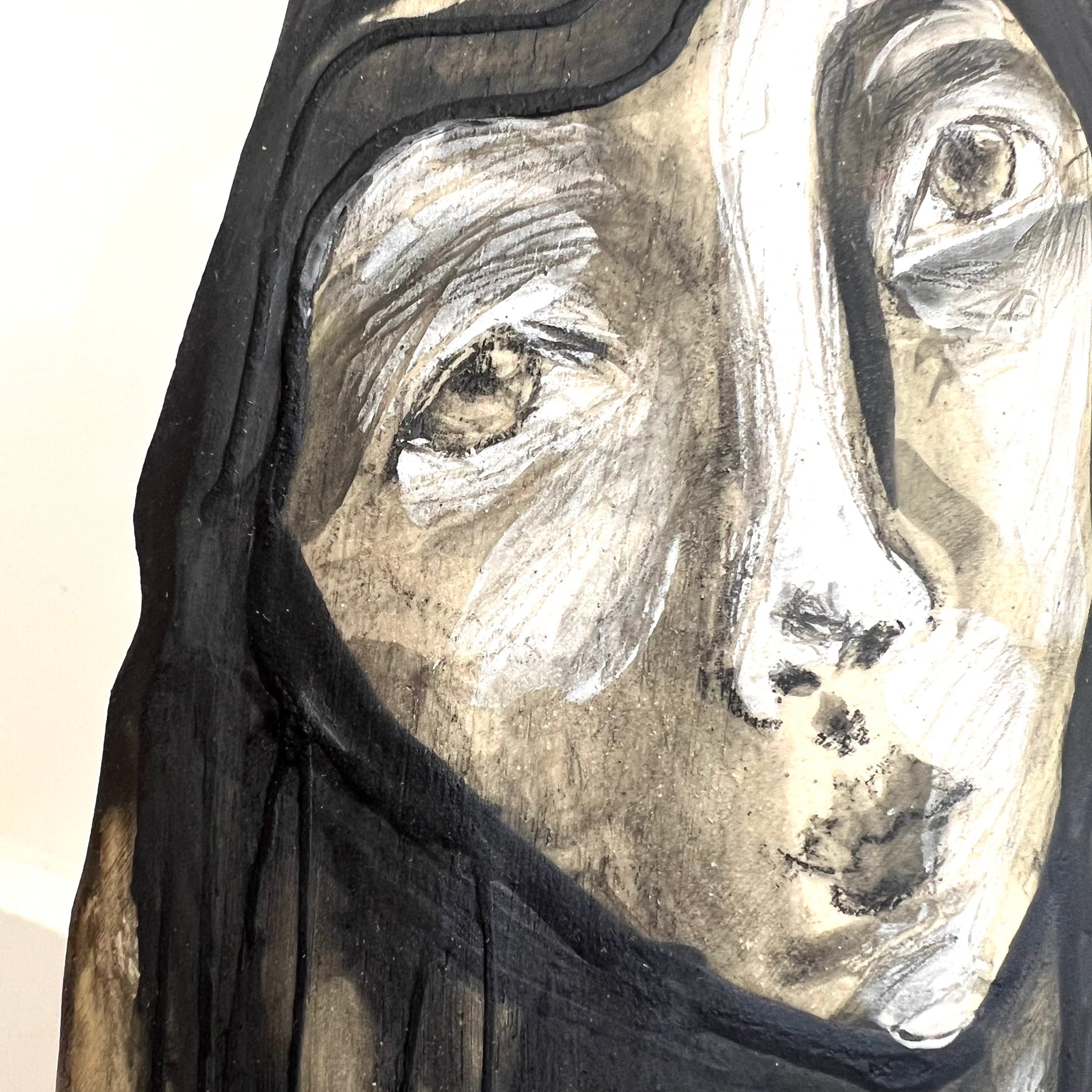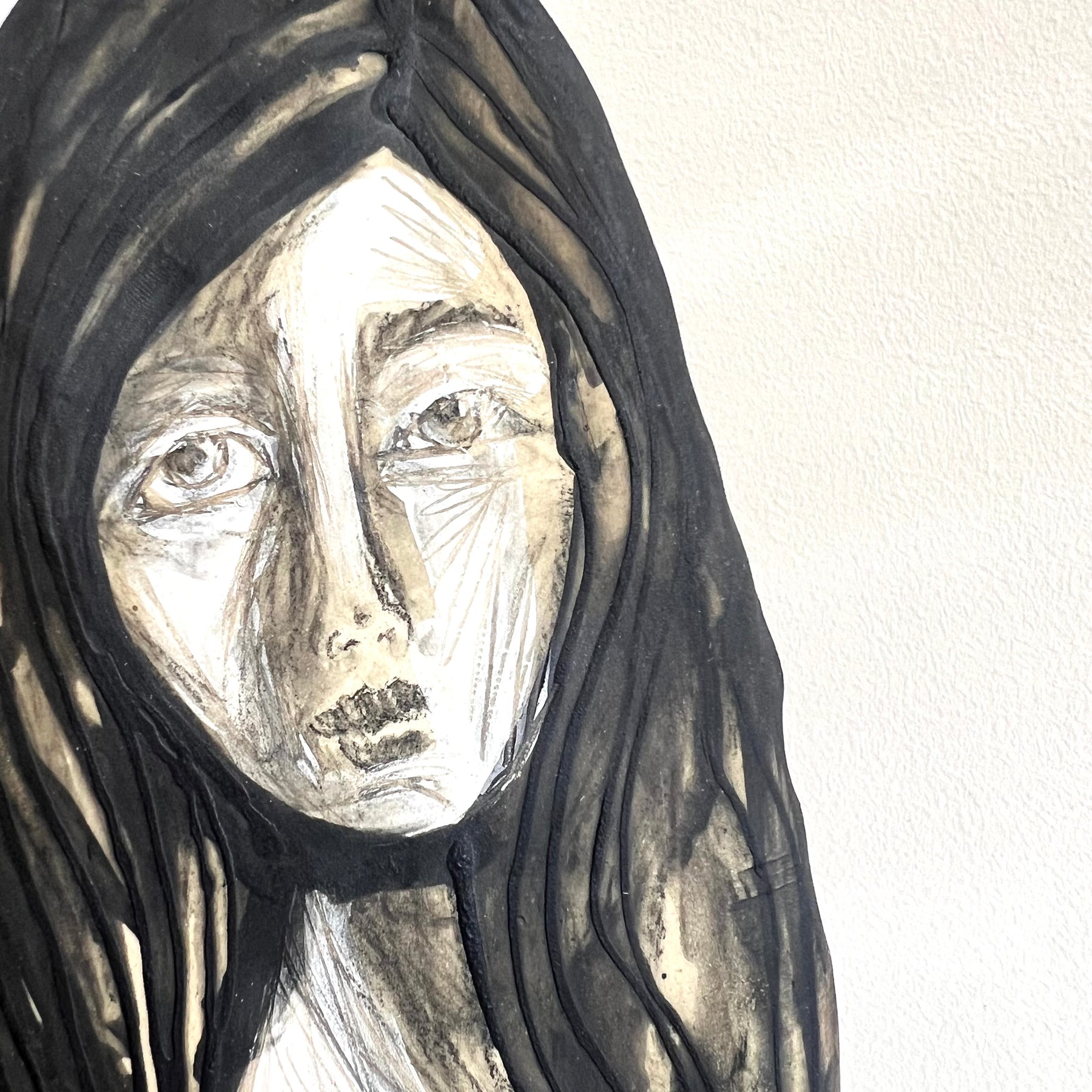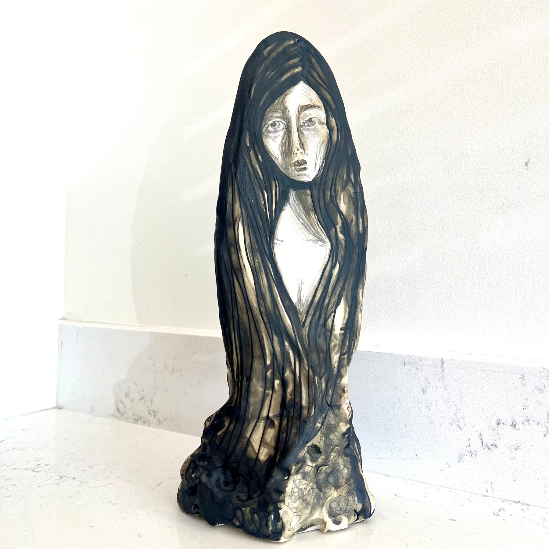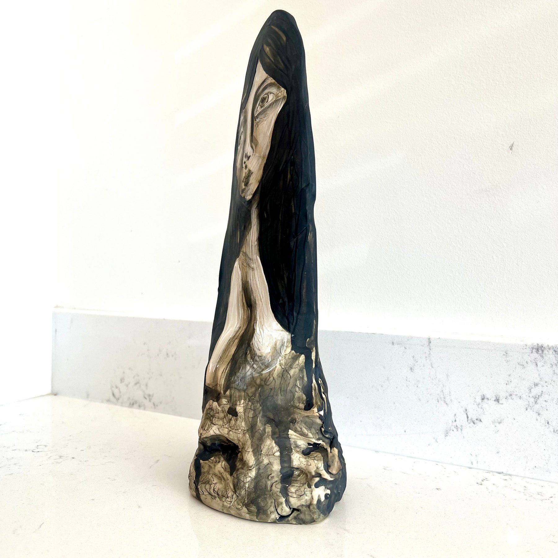 Two-sided Porcelain sculpture with Niki Croom's signature black and white sketch-like glazes.