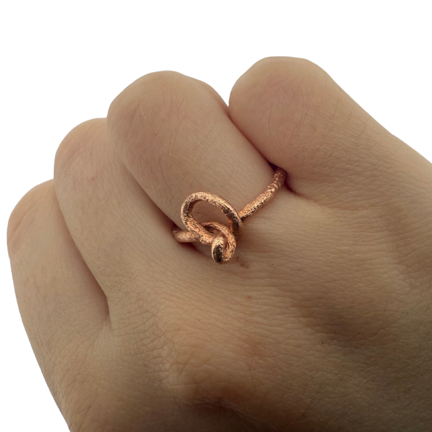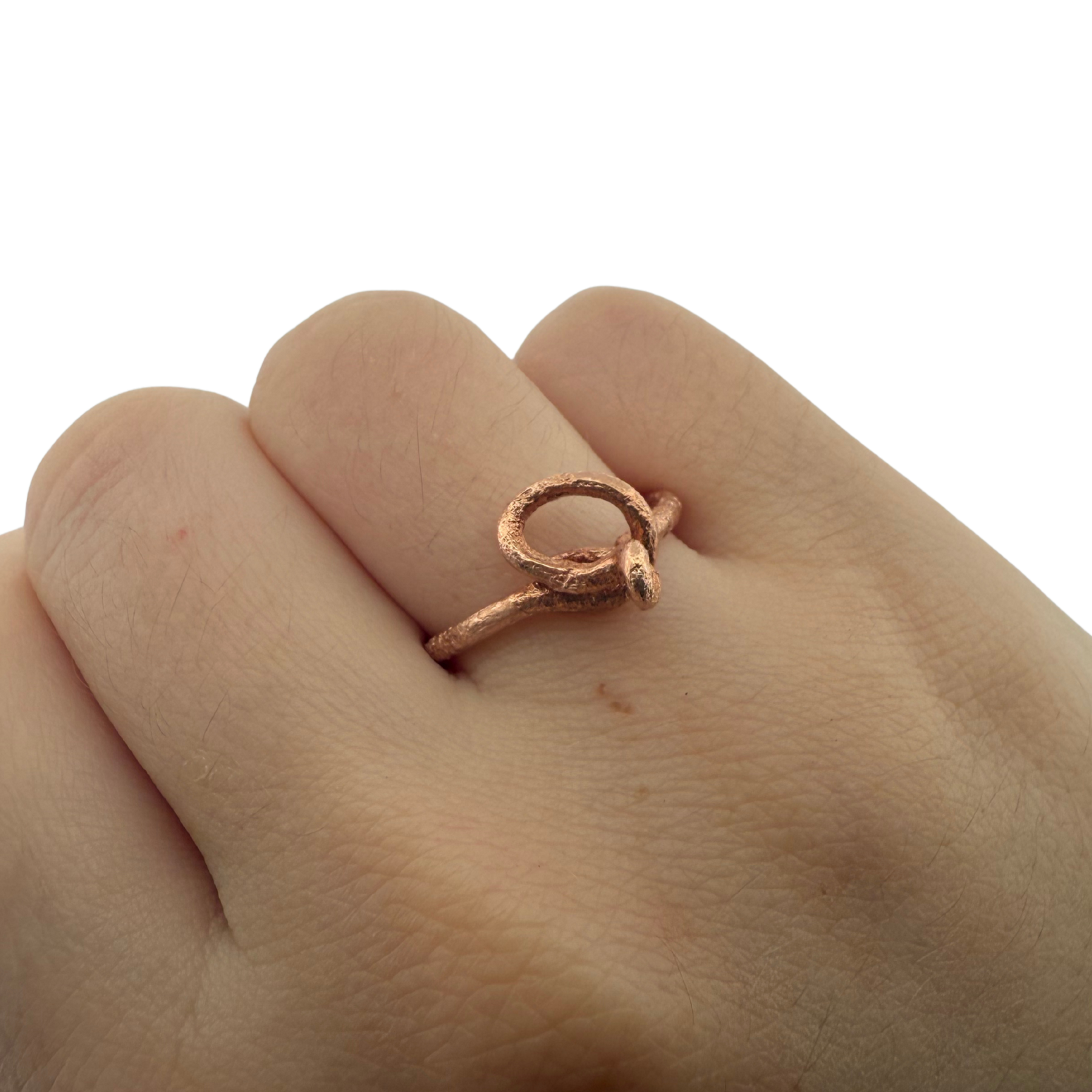 A sweet 14k rose gold tendril ring cast from real grape vines.