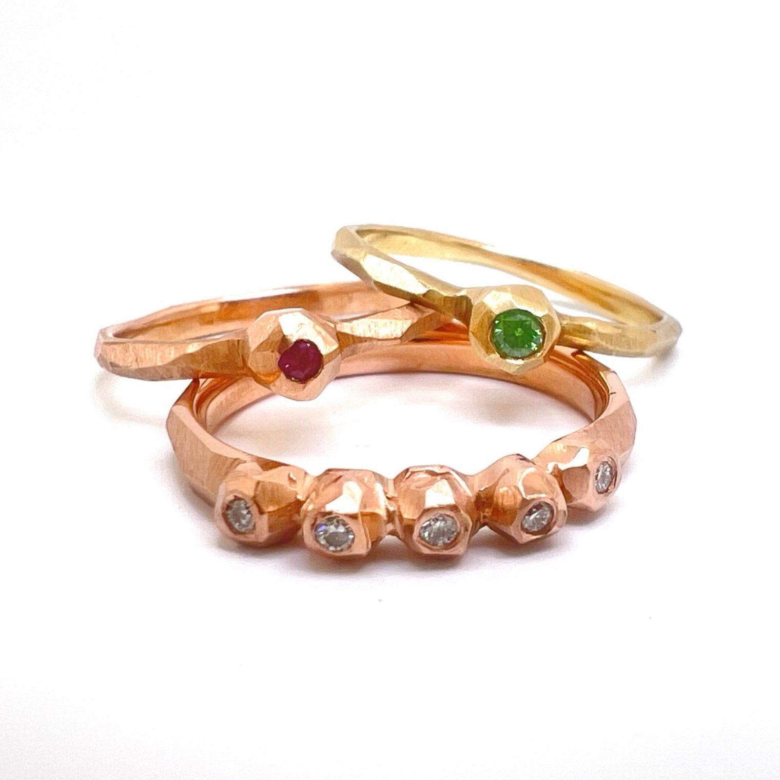 Multiple Nugget Facet Ring - Rose Gold & Diamond