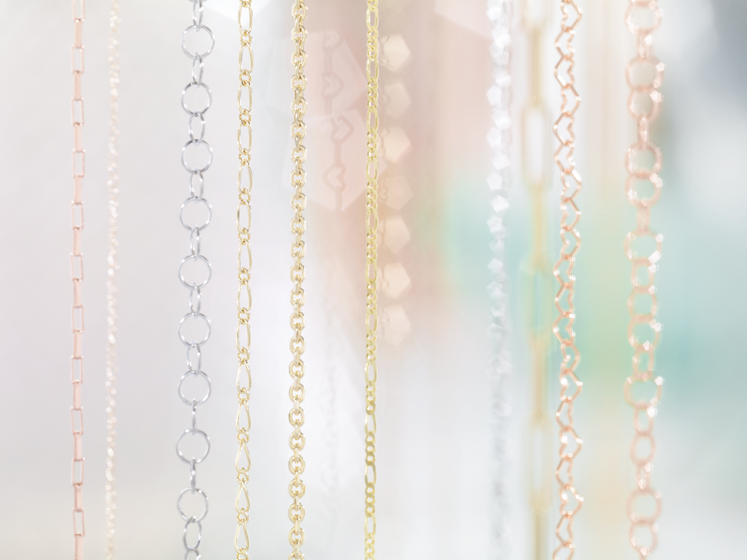 We offer a variety of chain and charm styles in solid 14K gold and sterling silver that can be made into bracelets, anklets, or necklaces.